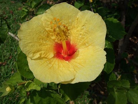 歩道の横には、たくさんのハイビスカス。