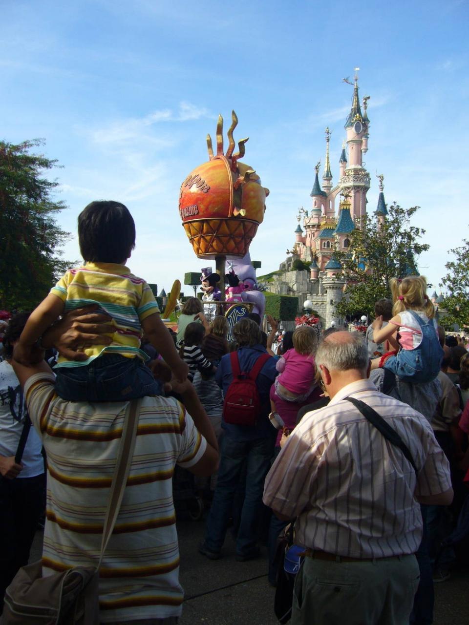 ミッキーやプーさんの着ぐるみは怖がった子供達だけど、パレードになると手を振ったり嬉しそう。