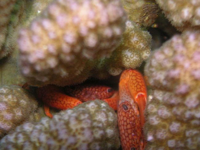 - 穴の奥のエビはオトヒメエビの久米島バージョン