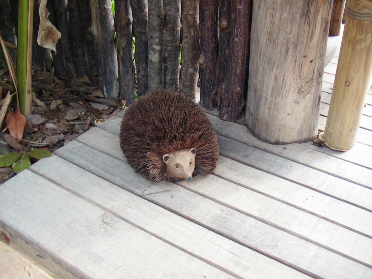 玄関の足元には、モルディブでもおなじみのハリネズミが!