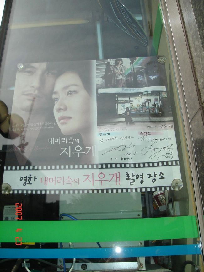 3号線でソンルン駅下車。テヘラン路をヨクサム駅方面へ歩きます。ソウル・ルネッサンスというホテルの隣くらいに「私の頭の中の消しゴム」に出てきたファミリーマートを発見!!