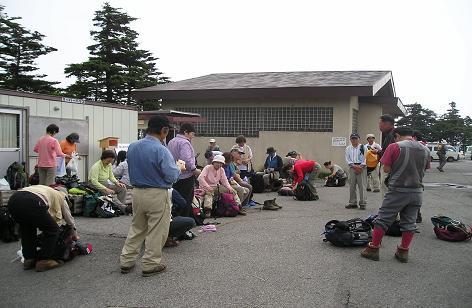 下山は一度8合目で小休止を取った以外は、ちょこちょこ花を見ながら立ち止まる程度で、2時間足らずで元の駐車場まで戻る。途中、何グループかの講中に行き違ったが、名古屋方面からグループが多いようだ。霧の中から「六根清浄、六根清浄」と聞こえ出し、続いて先達の大きな声で「おお山晴天、サンゲ、サンゲ」とリードすると、それに唱和して子供達の大きな声がこだまする。子供達は皆元気そうに登山を楽しんでいる。毎年来ていて慣れっこになっているのか、「サンゲ、サンゲ、オオヤマ晴天、六根清浄」と講中の姿が見えなくなって後も遠くから響いてくる。実に信仰のお山に違いない。