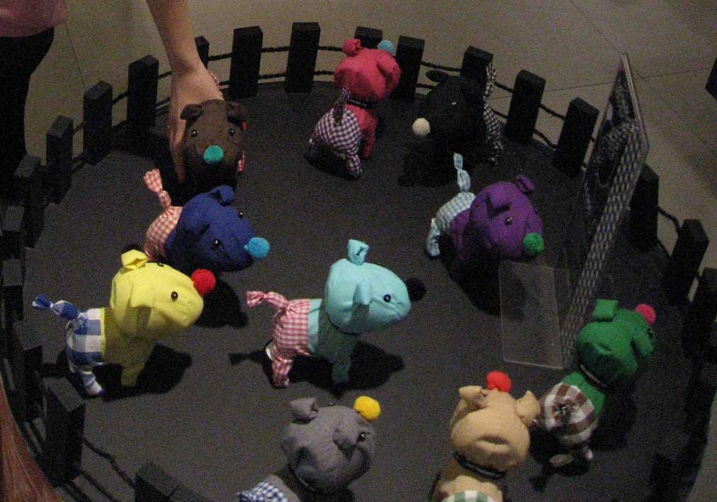 色とりどりで、赤い鼻に黄色の胴体、ギンガムのヒップなんていう組み合わせの犬も・・・個性的でした。 -