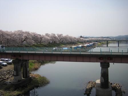 宮城県柴田郡大河原町を流れる白石川、其処両堤にソメイヨシノが1200本植えられている。白石川の一目千本桜と言うのだが実際は1200本有るのだそうです。4月16日は満開で一番美しい花の時期でした。