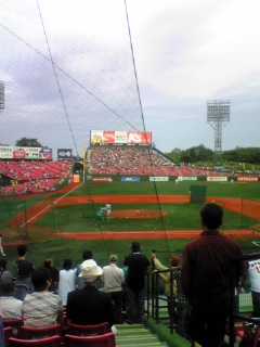 前日ファミリーマートで前売り券を買おうとしたら、外野自由席しかなかったが、当日券で指定席が残っていてほっとした。しかし、一番値段の高いバックネット裏と内野指定は外野よりしかなく、ショック。