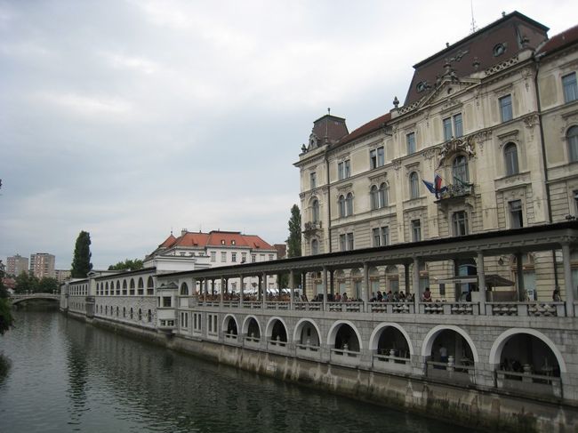 雨に降られつつも約30分でリュブリャナ駅に到着。リュブリャナ駅からはさらに南へ、プレシェーレノフ広場を目指す。この広場は、リュブリャナでも有名な場所なのか、かなりの人がいた。フランシスコ会教会や三本橋を見てまわる。しかし雰囲気のいいところだ。天候はあまりパッとしないがオープンテラスカフェでは、地元民や観光客がエスプレッソやビールを飲みながら談笑している。