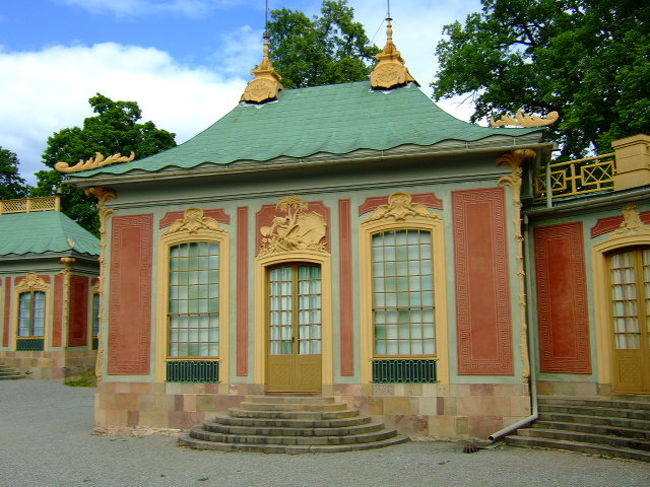 1753年建設。その当時、各国の東インド会社を通じて中国から様々な物品が欧州に輸入され、中国に対する興味が高まったのですが、この建物の設計者は往時の品物や本などを見て独自に研究し「想像上の中国風宮殿」を建てたのがこのKINA SLOTTなのだそうです。