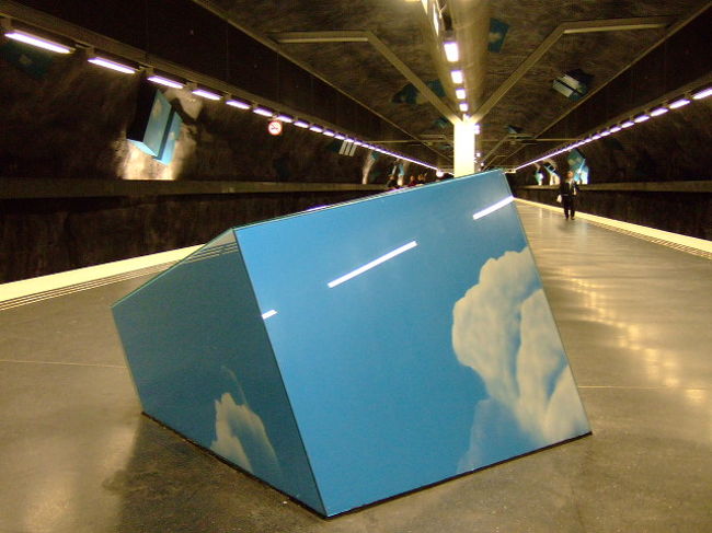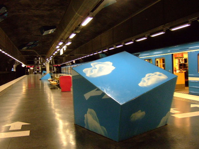 いよいよ優勝のVreten駅!この駅はなんと日本人彫刻家・楢葉タカシ氏のデザイン。青い空&白い雲がさりげなく、自然的かつ人工的に配置されていて清清しい印象を与え、駅全体がとても明るい雰囲気を醸し出していました。