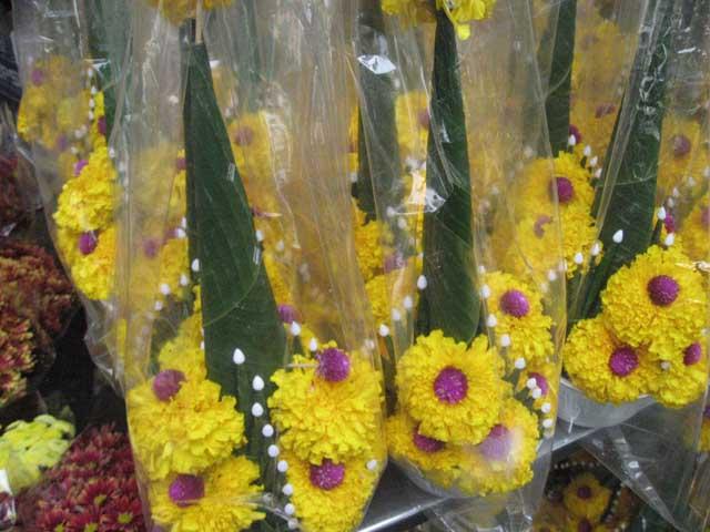 こちらは、蘭系のお花の袋詰め。一袋で50バーツは、安いなぁ。。。