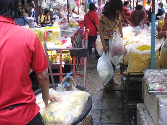 広い市場をグルグル歩いていると、花だけじゃなく、何でも売ってるのが分かります。ここはスパイス系のお店みたい。