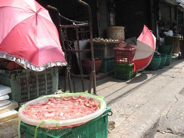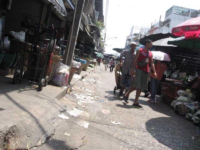 市場は、何処から何処までが「市場」というくくりがなく、この周辺一帯が市場になっていました。車道のギリギリの所までお店があります。