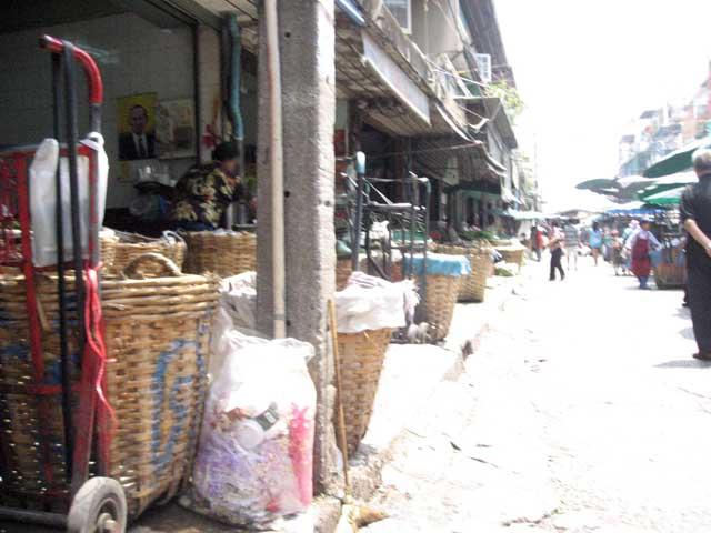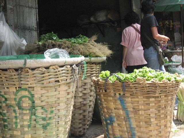 野菜を売ってるお店付近には、大きなカゴが沢山。