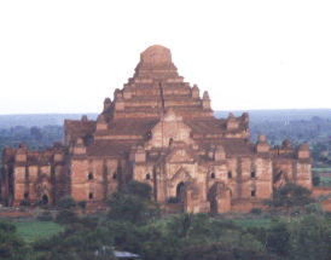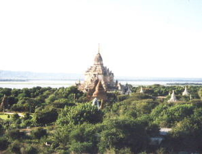 パガンの遺跡を代表する、とても美しくバランスの取れた寺院「アンナンーダ寺院」 僕はこの寺院の名前を初めて耳にした時、何故か「アンナーダ・そうなんだ−」なんて頭に閃いてしまった。かなりオヤジ的な発想に自分自身呆れていたが、この発想のお陰で、絶対に名前を忘れることはなかった。そんなことはさておき、この寺院本当に美しいのであります。なんとなく女性らしいイメージのある寺院だと僕は感じました。
