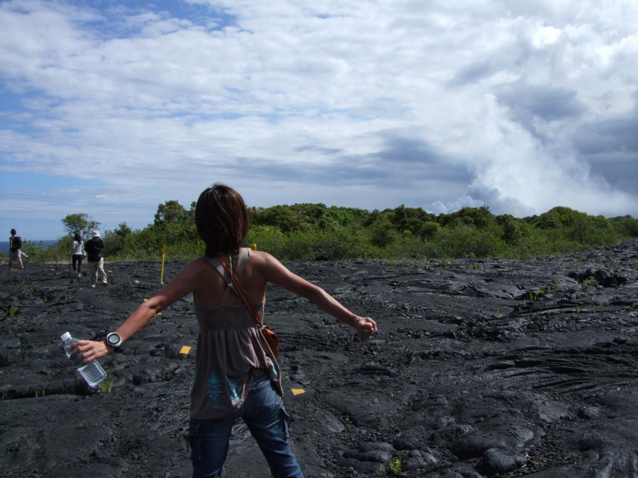 溶岩が海に流れこんでいて、ものすごいケムリ。