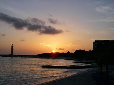 カンクンの海辺で迎える日の出も最高です。