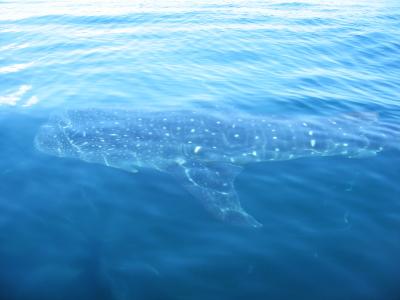 私たちのボートキャプテンはまだこの海域でのジンベイザメスノーケルが