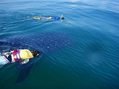 水中深く潜ってしまうとボートからジンベイの姿を追いかけることが難しくなり、
