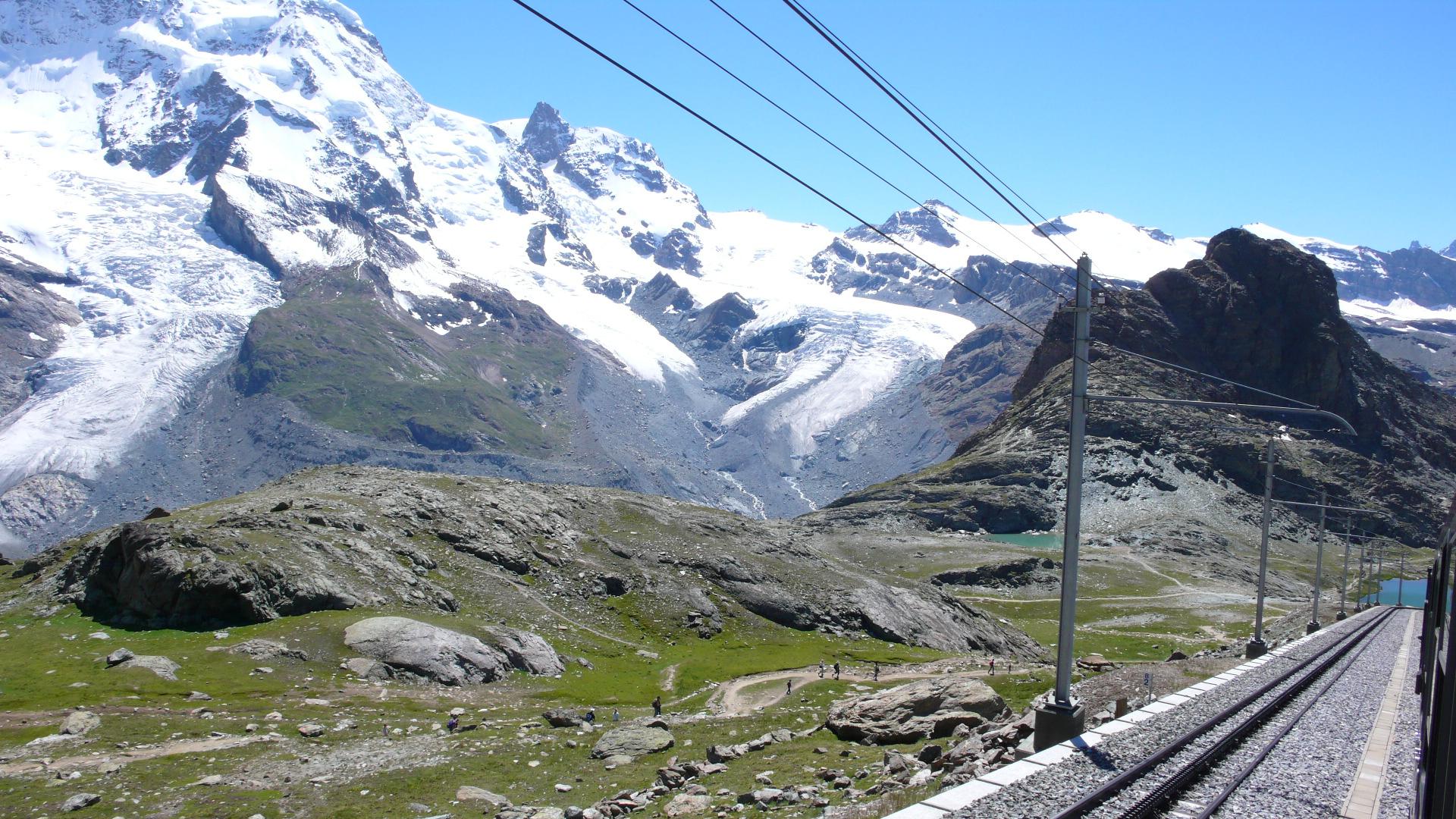 車窓からもマッターホルンが良く見えます。上りは、進行方向右側の席に、下りは、左側の席に座られる事をお勧めします。