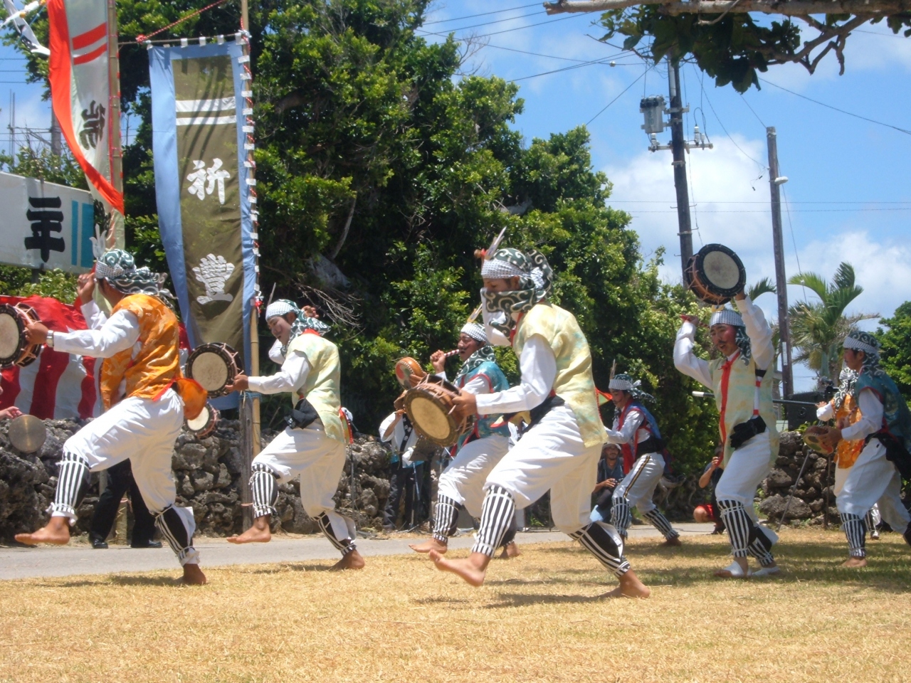 ミルクは五穀豊穣の神様で、八重山各地に現れて、基お面をかぶっている。よそのミルク様は黄色の衣装を身に着けているが、鳩間島のミルク様は紺色。