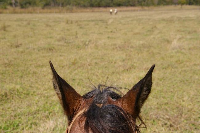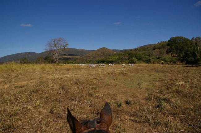 とりあえず乗馬の手ほどきを10分ほど教わった僕は早速皆について牛を追いに牧場に出ることに。馬って人間が乗った瞬間にどれだけ乗馬に慣れているか瞬時に判断できるというが、今回乗せていただいた馬はよほど頭がいいのか、瞬時にはじめて乗った人だということがわかったらしく結構おとなしく言うことを利いてくれるふりもしながら他の馬をゆっくりついていってくれた。