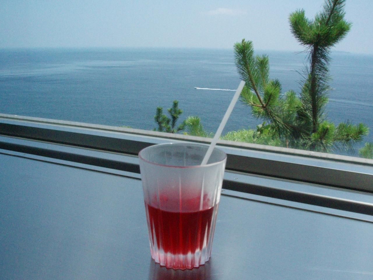 ロイヤルラウンジではソフトドリンクが用意されていて広い空間で海を見ながら優雅にお茶ができました。