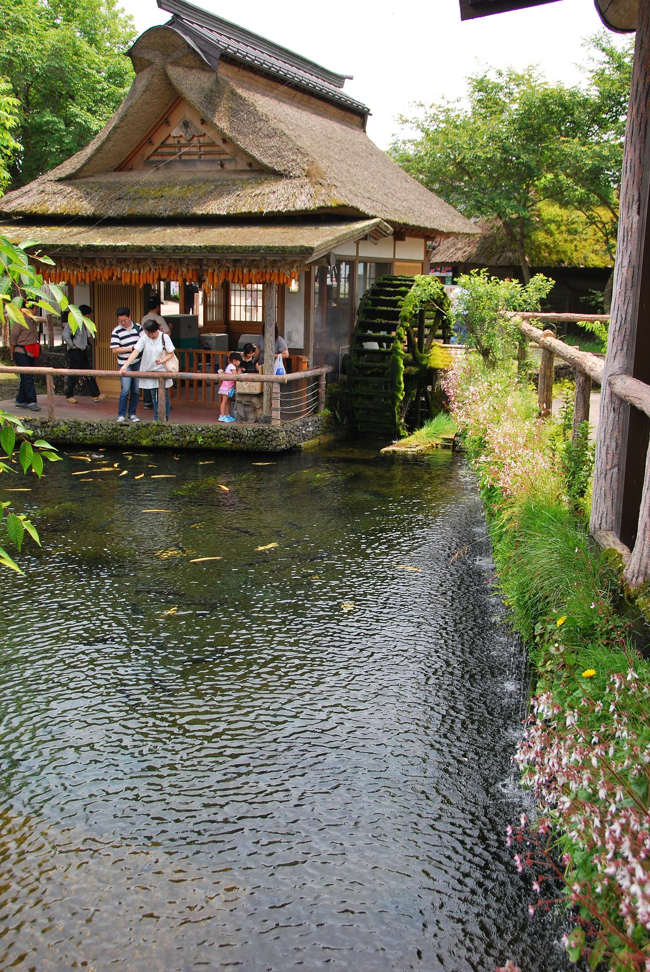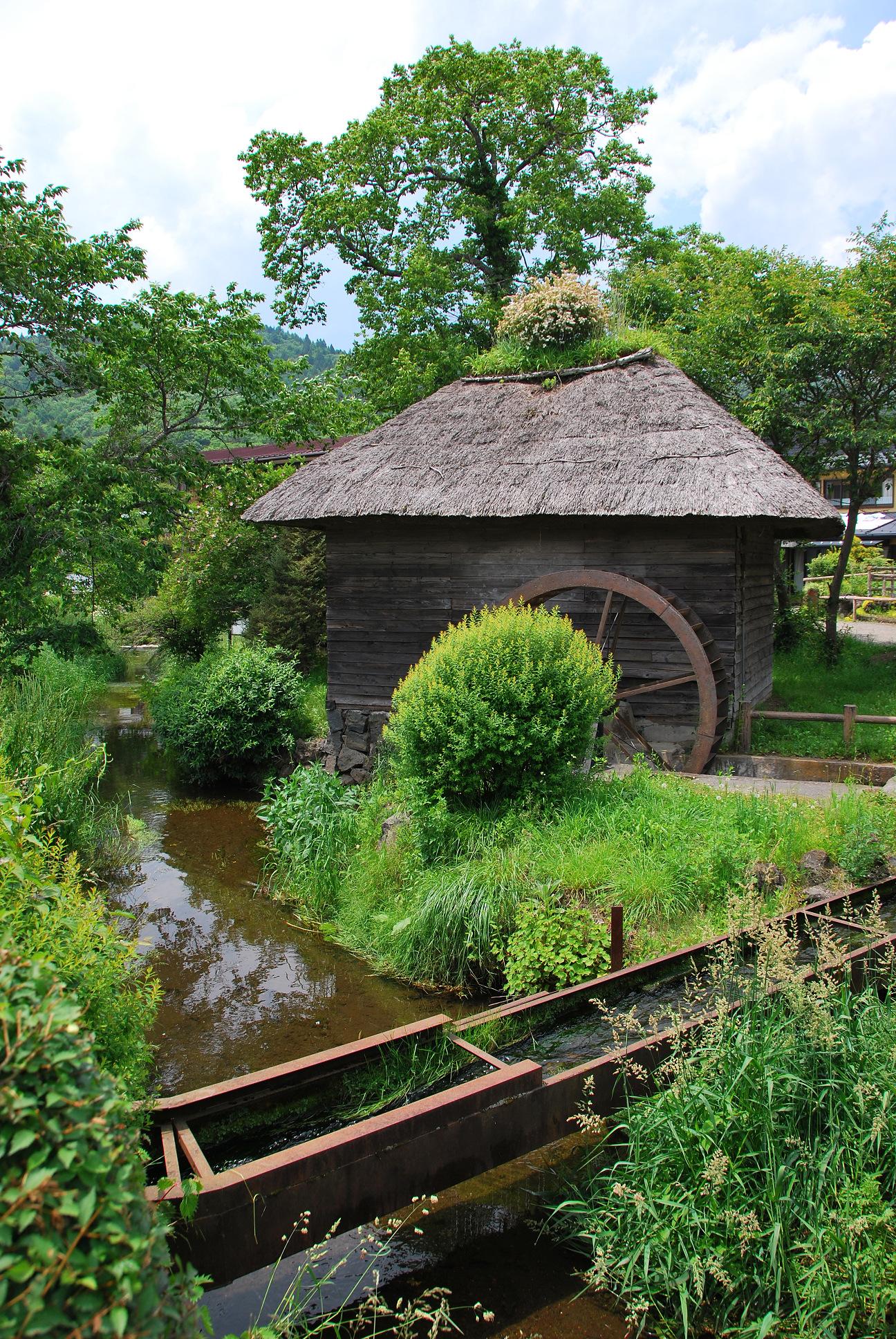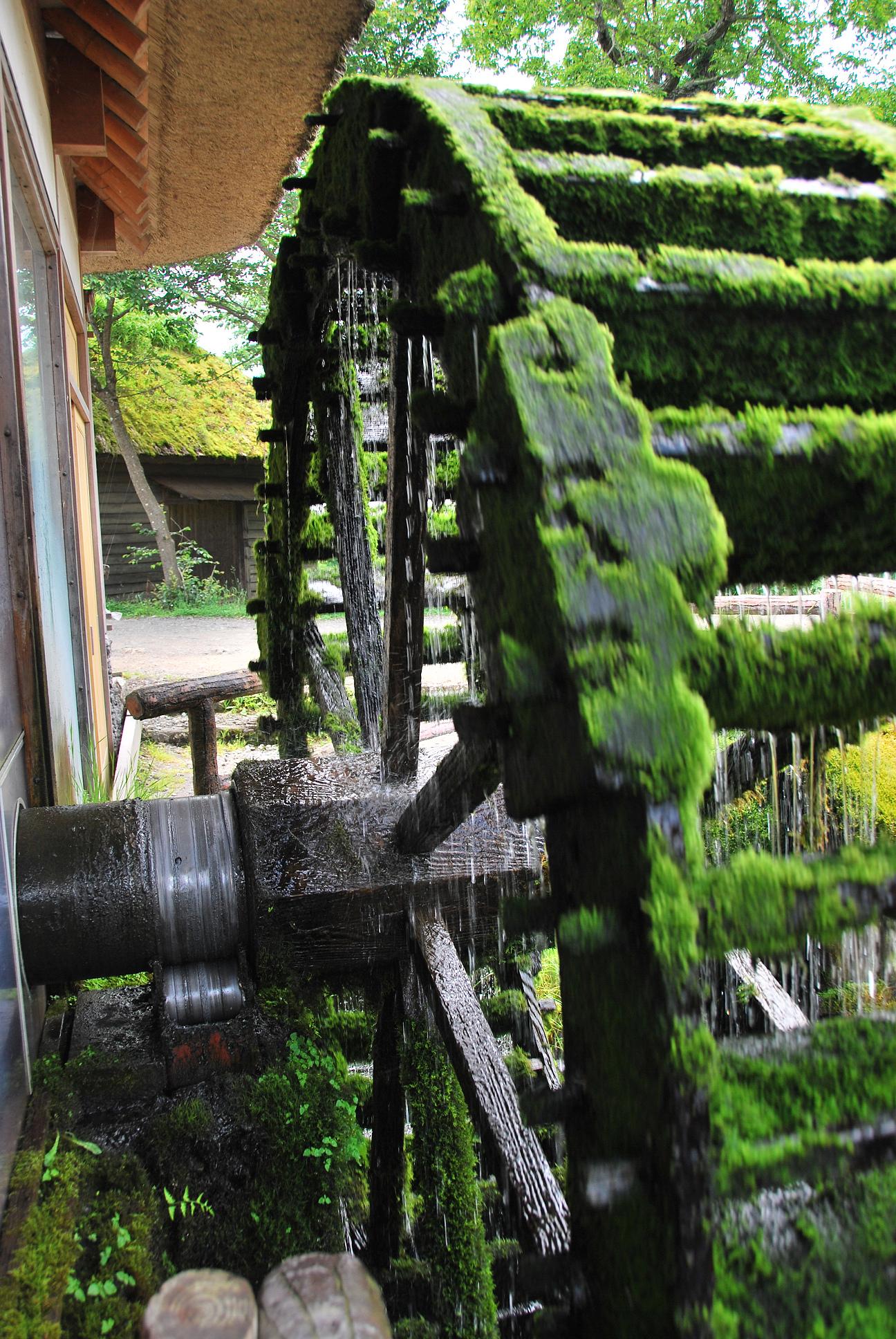 水車小屋。水車が、バシャ、バシャと水音を立てています。