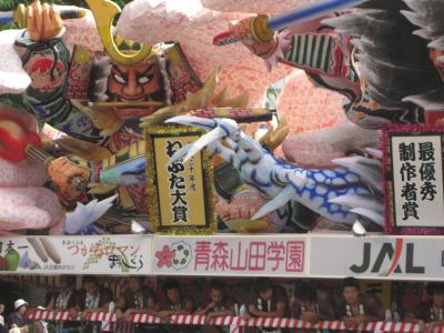 ねぶた大賞は、青森山田高校のねぶた。桜がきれいです。 -