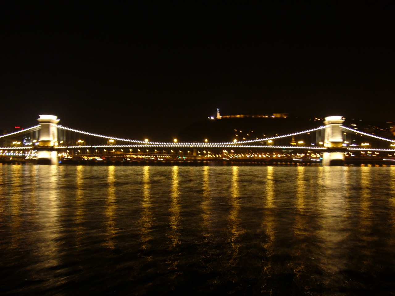 夜になるとライトアップされる、ブダとペストを結ぶ
