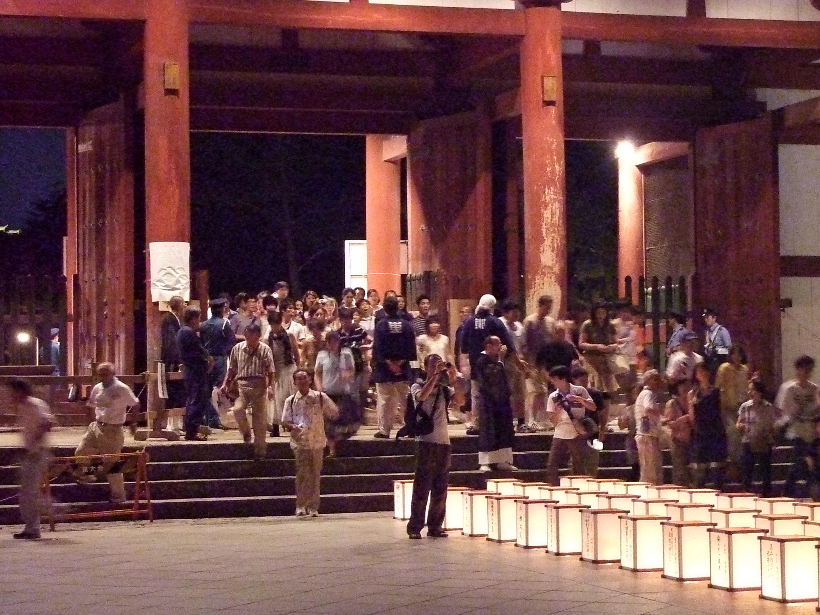 「大仏さまに約2,500基の燈火をお供えして諸霊を供養する万燈供養会。大仏殿前の国宝・八角燈籠にも灯りがともされ、整然とした大仏殿前の石畳に並べられた燈火とともに、幻想的な雰囲気が醸し出されます。当日は、午後7時から午後10時まで、大仏殿の中門が開かれ、無料拝観できます。 また、大仏殿の観相窓が開かれ、中門から、大仏さまのお顔を拝観できます。」