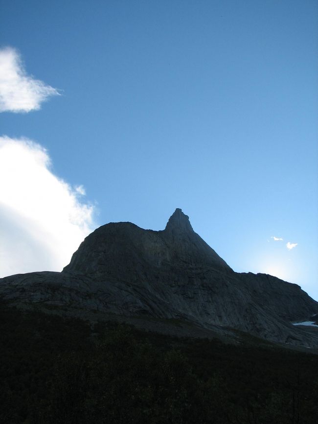 写真は、キャンプ場から車で30分ほどのトレイルヘッドからのMt.Stetind。 -