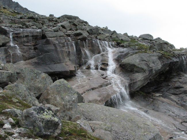 しばらく行くと、小さな滝に出会います。