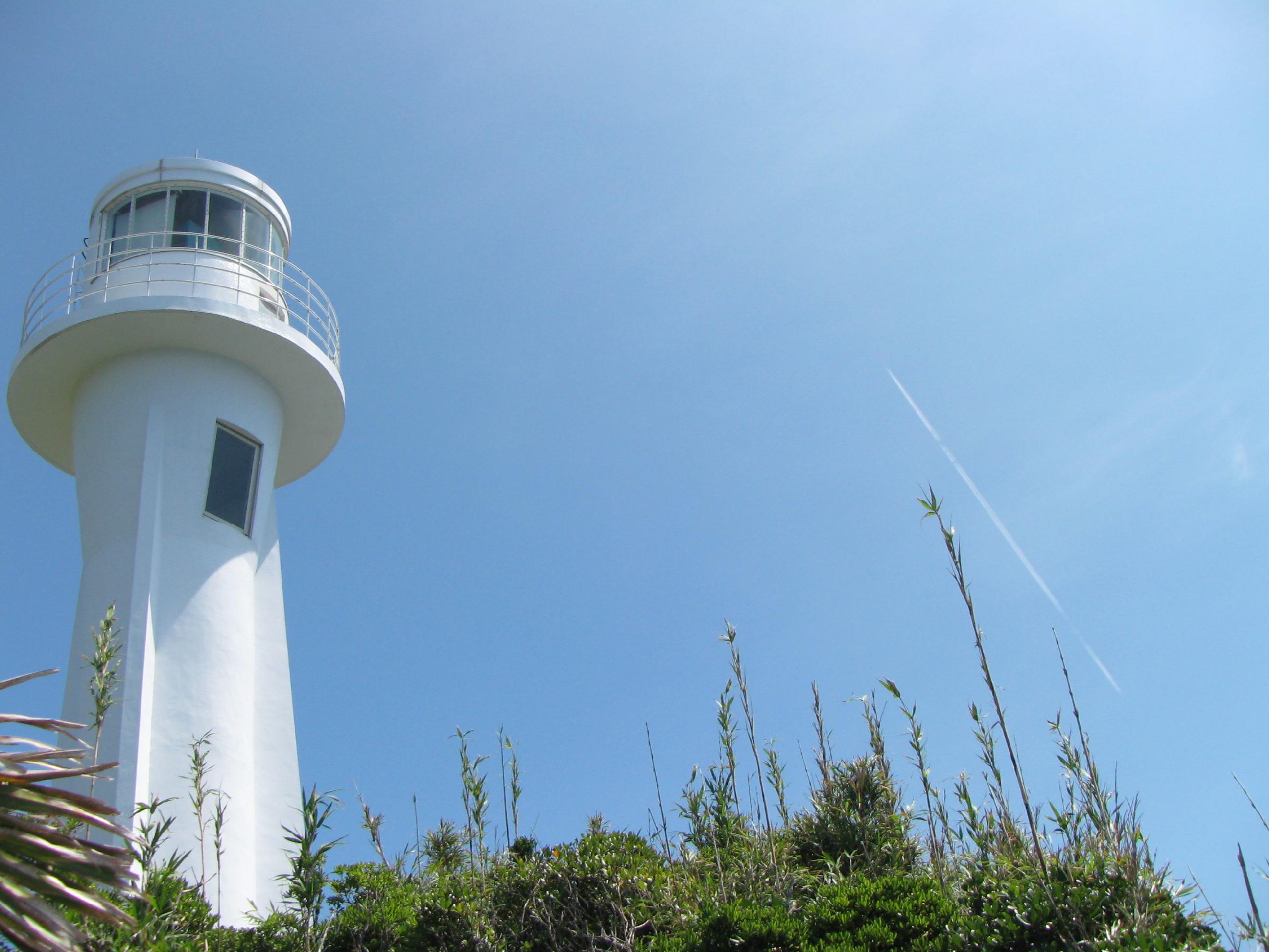 ちょうど上空に飛行機が飛んでいたので,一緒に撮影。夏の空の青と灯台の白と飛行機雲の対比がとても気に入っている1枚です。 -