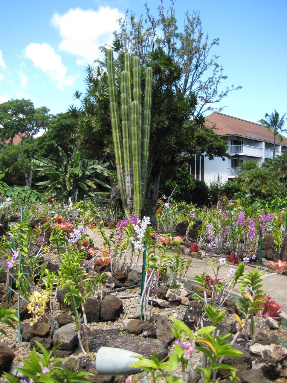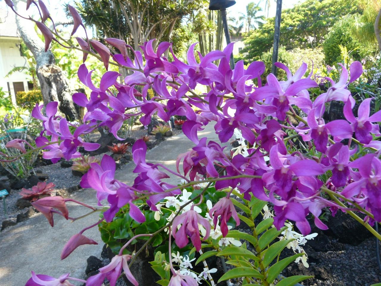カウアイ島南部のポイプビーチに面した、リゾート・コンドミニアム、キアフナ・プランテーションの中にある庭園は、ラン園とも言って良いくらい、ランがいっぱい。