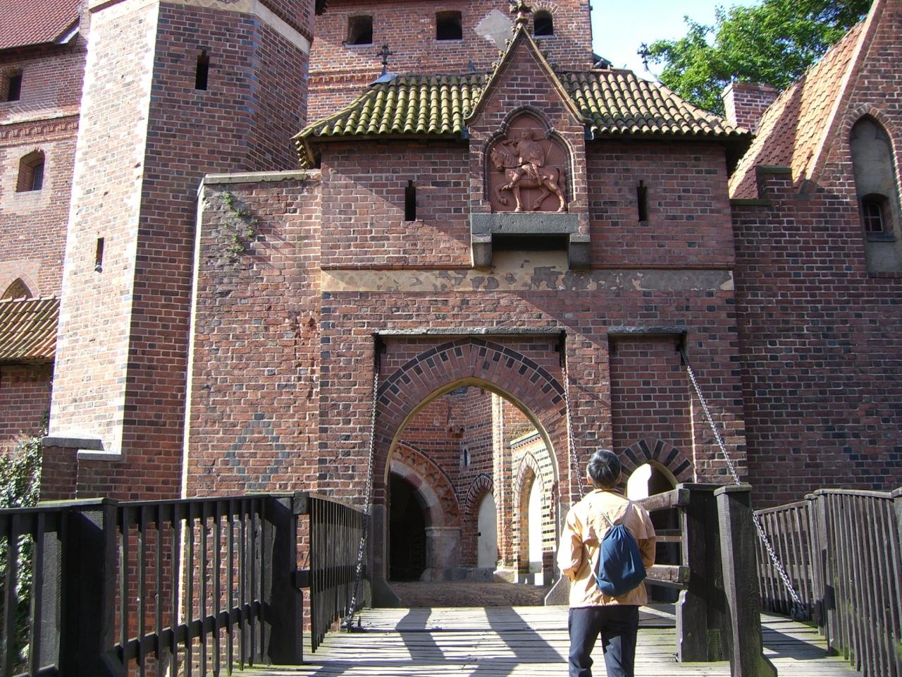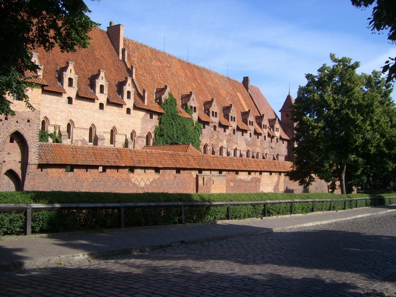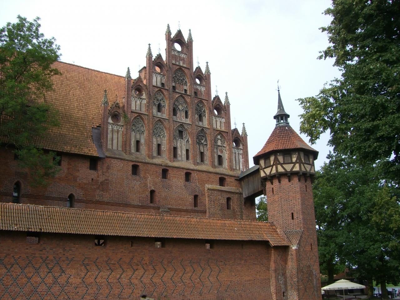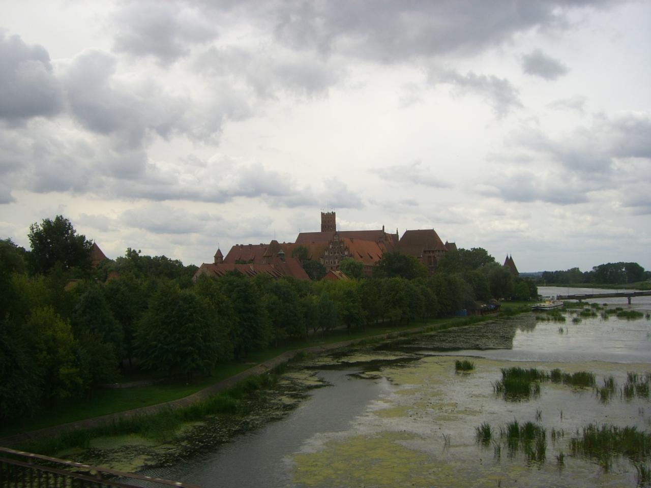 帰りの列車内よりマルボルクのドイツ騎士団の城を見て。マルボルク城はドイツ騎士団のバルト海沿岸地方征服の拠点として1274年に建築された要塞。ポーランドとドイツ騎士団の争いの中ドイツ騎士団はマルボルク城に立てこもったが第一次トルニ和平条約で騎士団はポーランド王の支配下に入り城はドイツ騎士団の居域として認められた。しかし、1453年に再びポーランドと戦争になり1457年に城はポーランドに明渡された。1460年頃からは歴代のポーランド王が地方を訪れる際使用され増改築がなされた。城は3つの城が組み合わさって出来ている煉瓦造りの大きな城となっている。マルボルクの町は1871年にはドイツ帝国の支配下に入り、城は第2次世界大戦で随分破壊されたがポツダム宣言によりポーランドに復帰した。