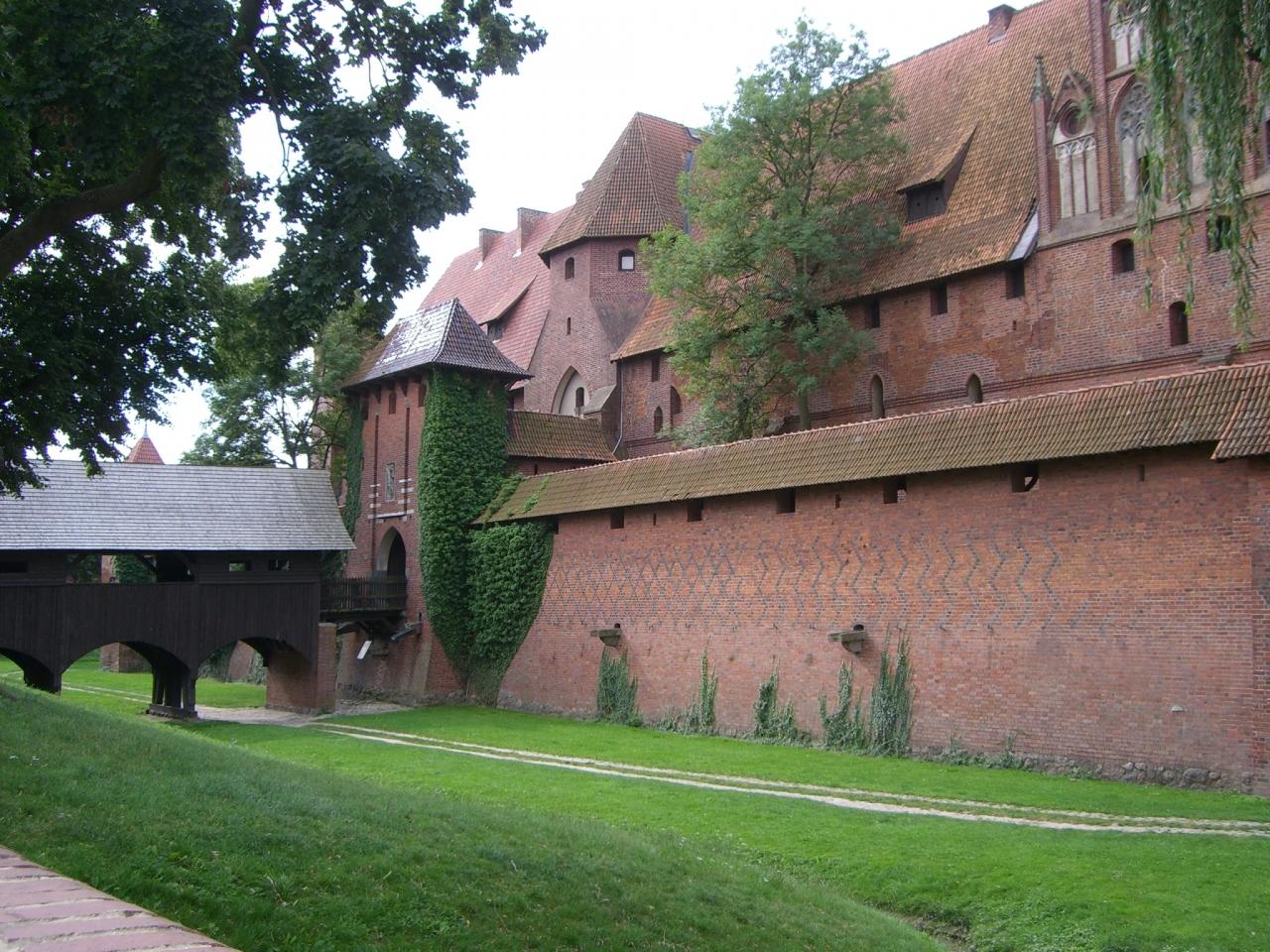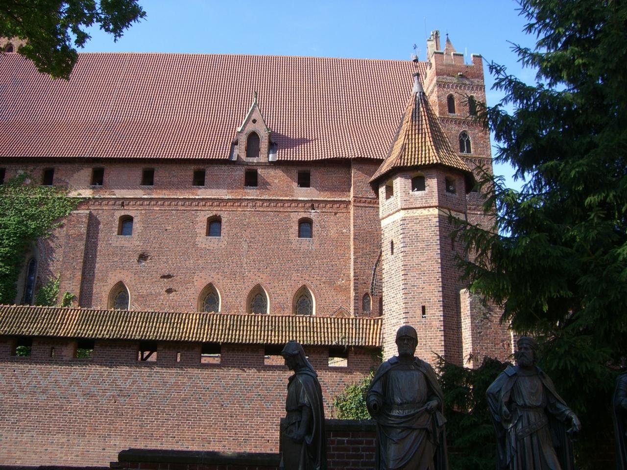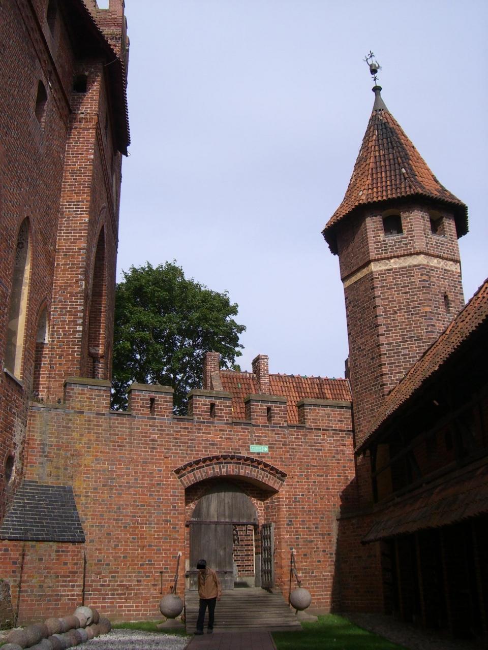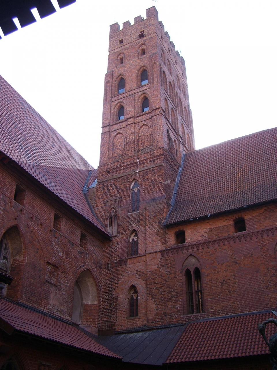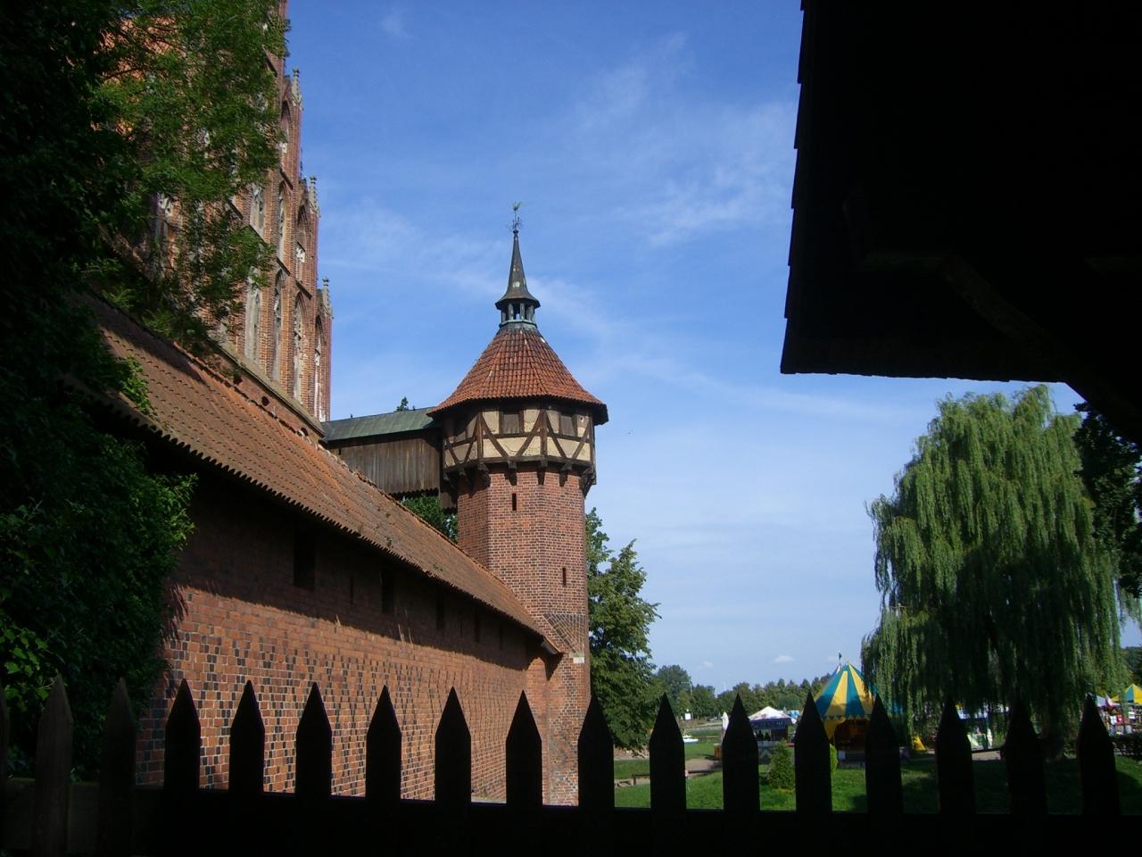 帰りの列車内よりマルボルクのドイツ騎士団の城を見て。マルボルク城はドイツ騎士団のバルト海沿岸地方征服の拠点として1274年に建築された要塞。ポーランドとドイツ騎士団の争いの中ドイツ騎士団はマルボルク城に立てこもったが第一次トルニ和平条約で騎士団はポーランド王の支配下に入り城はドイツ騎士団の居域として認められた。しかし、1453年に再びポーランドと戦争になり1457年に城はポーランドに明渡された。1460年頃からは歴代のポーランド王が地方を訪れる際使用され増改築がなされた。城は3つの城が組み合わさって出来ている煉瓦造りの大きな城となっている。マルボルクの町は1871年にはドイツ帝国の支配下に入り、城は第2次世界大戦で随分破壊されたがポツダム宣言によりポーランドに復帰した。