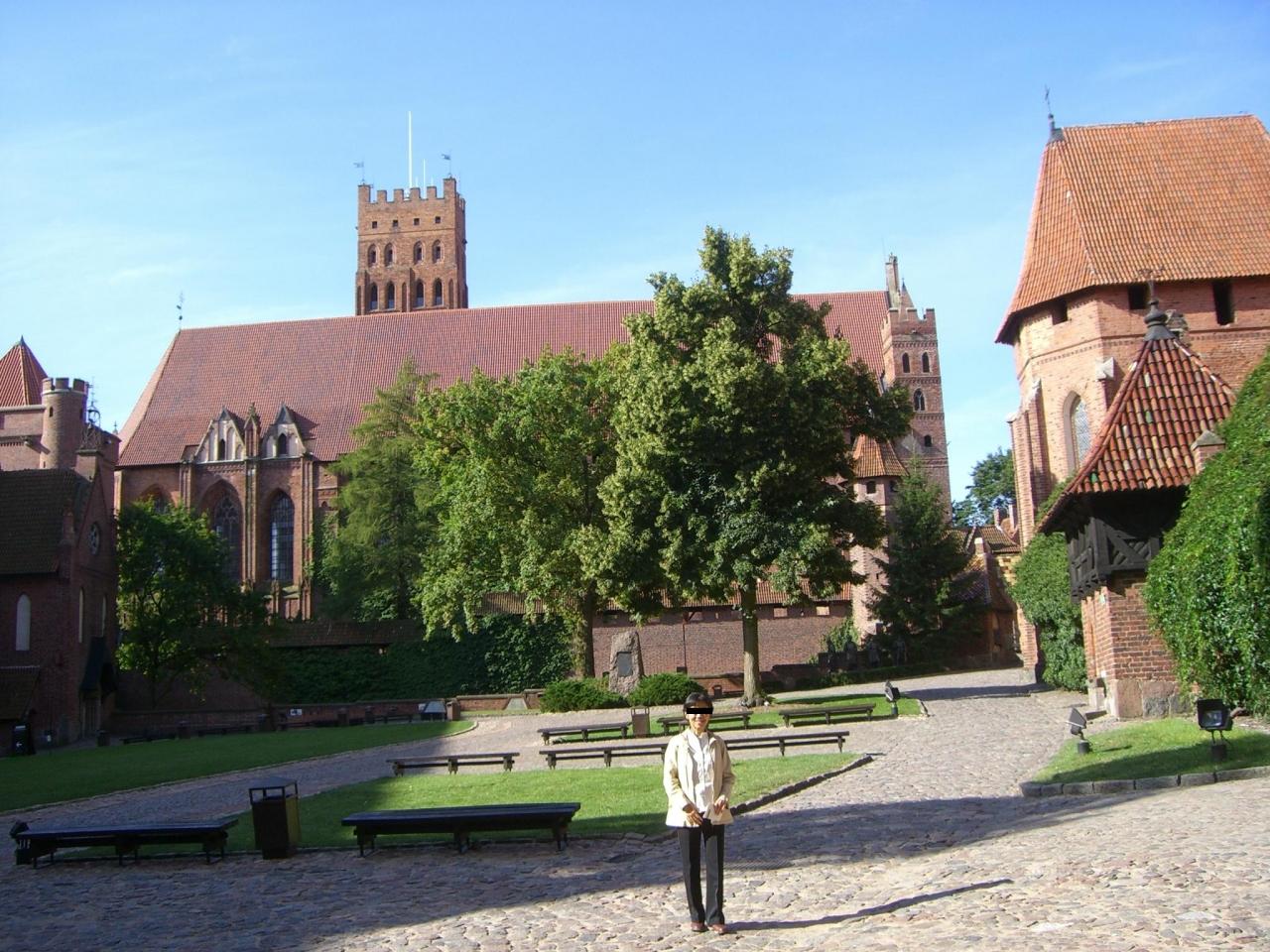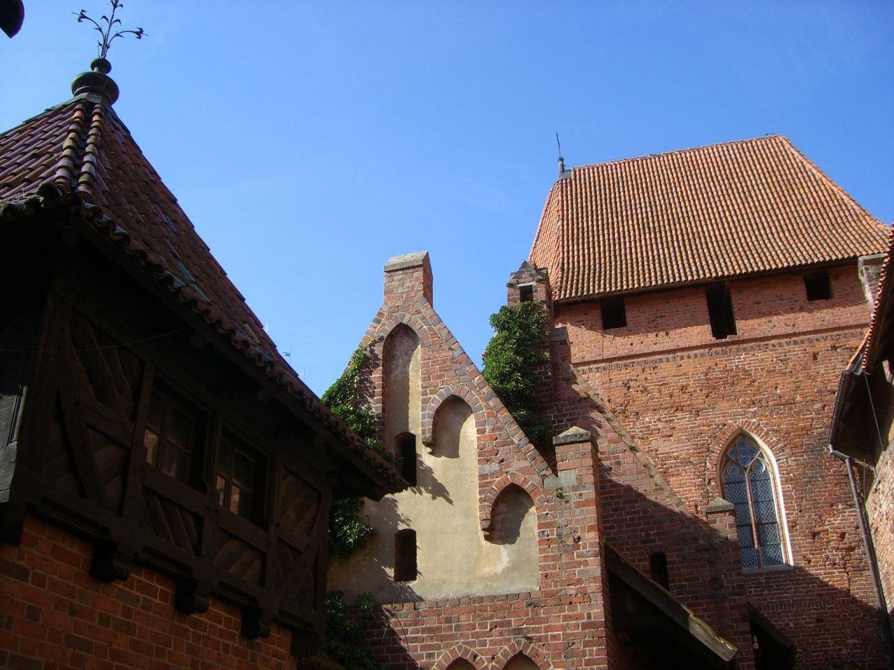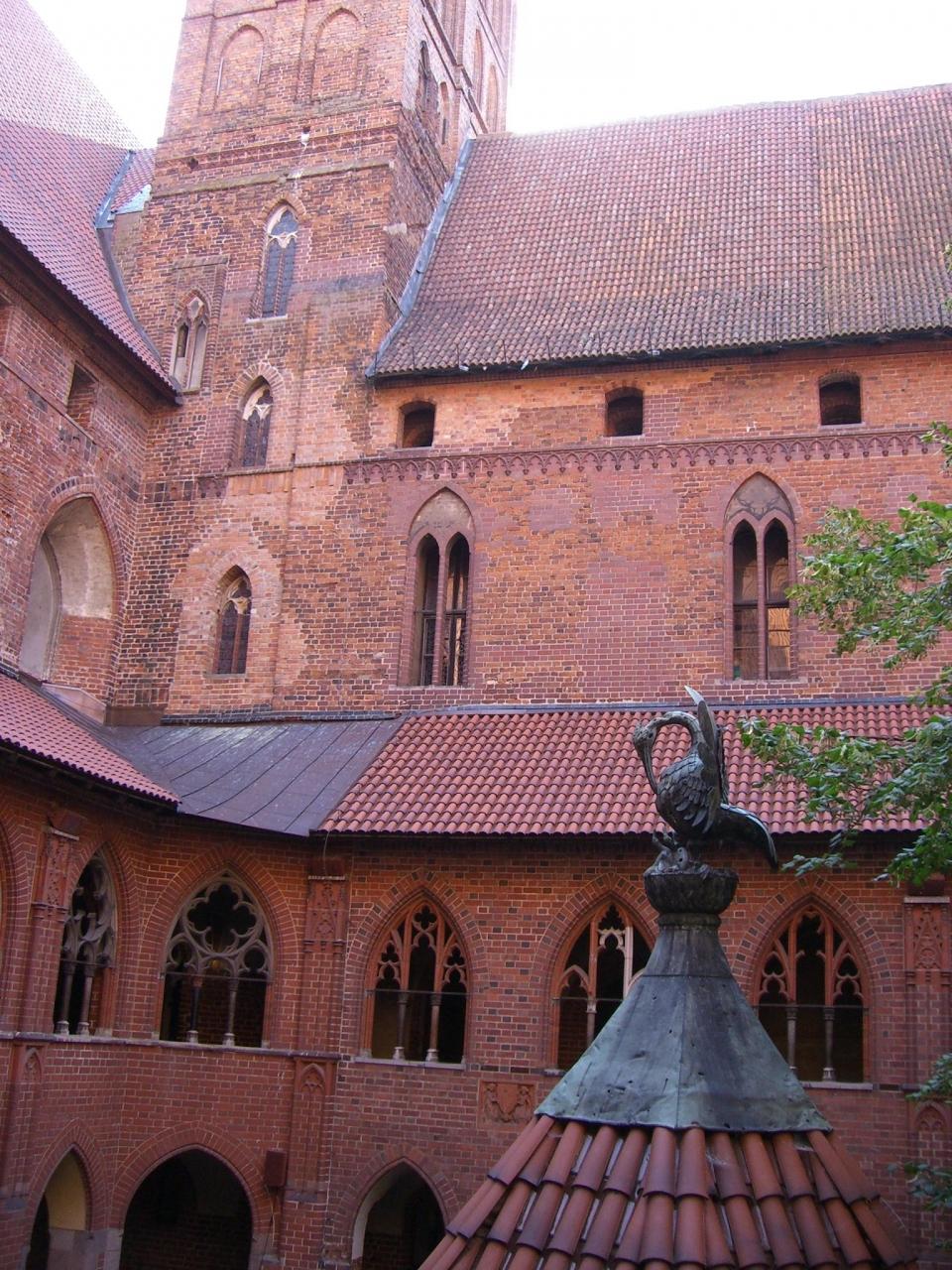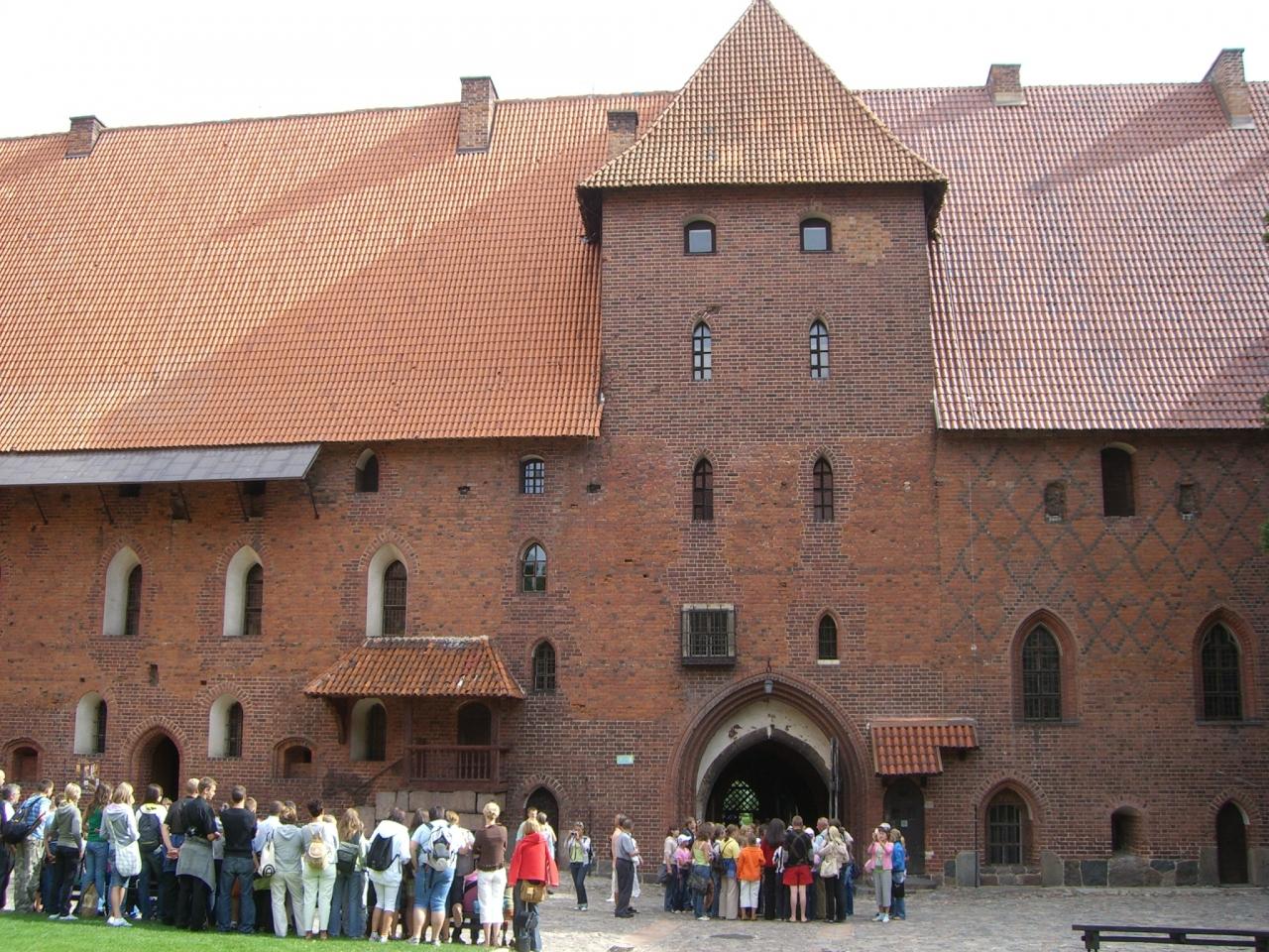 帰りの列車内よりマルボルクのドイツ騎士団の城を見て。マルボルク城はドイツ騎士団のバルト海沿岸地方征服の拠点として1274年に建築された要塞。ポーランドとドイツ騎士団の争いの中ドイツ騎士団はマルボルク城に立てこもったが第一次トルニ和平条約で騎士団はポーランド王の支配下に入り城はドイツ騎士団の居域として認められた。しかし、1453年に再びポーランドと戦争になり1457年に城はポーランドに明渡された。1460年頃からは歴代のポーランド王が地方を訪れる際使用され増改築がなされた。城は3つの城が組み合わさって出来ている煉瓦造りの大きな城となっている。マルボルクの町は1871年にはドイツ帝国の支配下に入り、城は第2次世界大戦で随分破壊されたがポツダム宣言によりポーランドに復帰した。