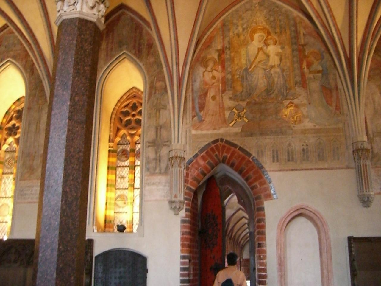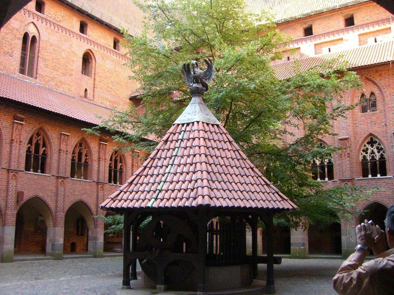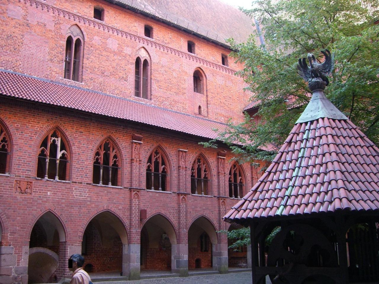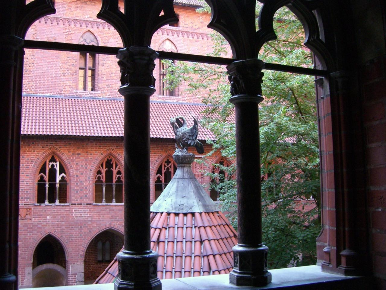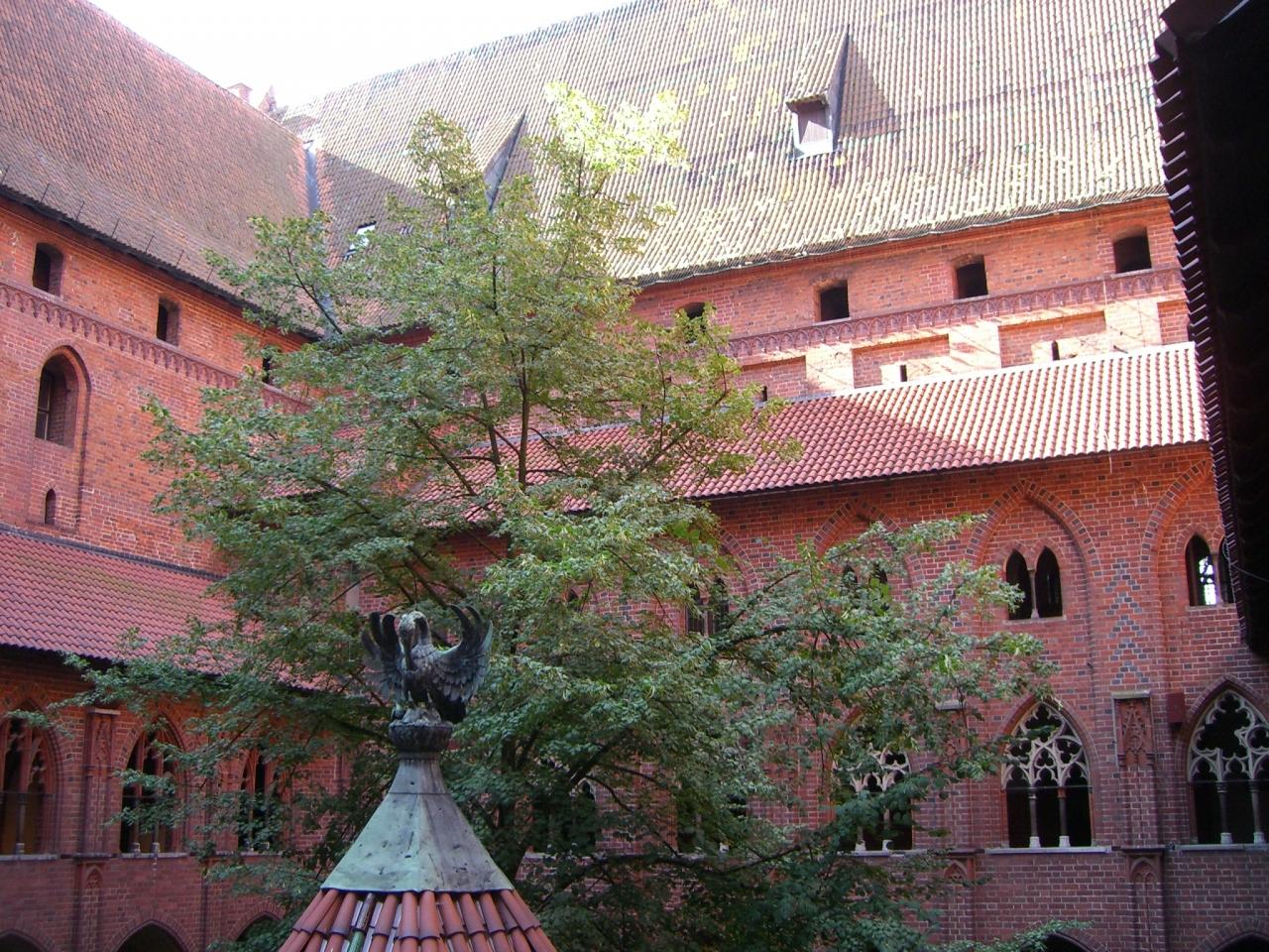 帰りの列車内よりマルボルクのドイツ騎士団の城を見て。マルボルク城はドイツ騎士団のバルト海沿岸地方征服の拠点として1274年に建築された要塞。ポーランドとドイツ騎士団の争いの中ドイツ騎士団はマルボルク城に立てこもったが第一次トルニ和平条約で騎士団はポーランド王の支配下に入り城はドイツ騎士団の居域として認められた。しかし、1453年に再びポーランドと戦争になり1457年に城はポーランドに明渡された。1460年頃からは歴代のポーランド王が地方を訪れる際使用され増改築がなされた。城は3つの城が組み合わさって出来ている煉瓦造りの大きな城となっている。マルボルクの町は1871年にはドイツ帝国の支配下に入り、城は第2次世界大戦で随分破壊されたがポツダム宣言によりポーランドに復帰した。