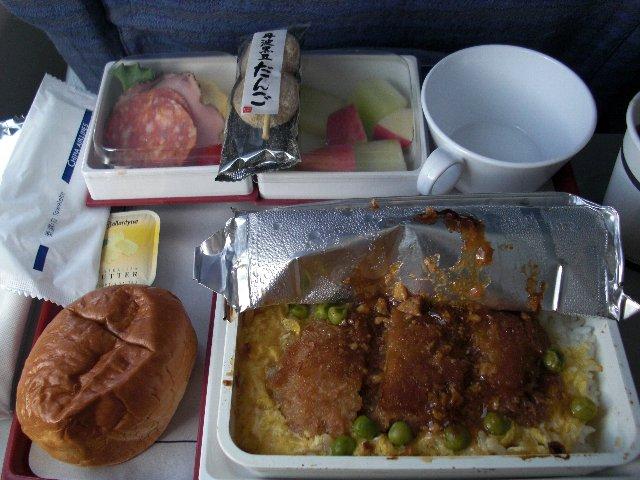 機内食は、フツーにフツー(~_~;)でしたよ。キャセイに乗って来たJUARさんの機内食と比べたら、ちょっと悲しかったですけど…。でも、キャセイはアイスクリーム、出なかったそうです。ついに経費節減もここまできたんでしょうかね?