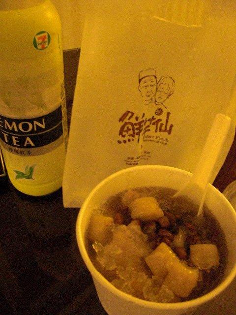 とりあえず、小腹もすいたことだしJUARさん到着まで暫く時間があるので、駅周辺をぶ〜らぶら。台北駅2階には新幹線開通にあわせたのか、と〜ても綺麗な食堂街が出来ていました。大戸屋あり、新大阪の駅構内にもあるシュークリーム屋あり、ここはドコ??って感じです。そのなかで「鮮芋仙」というデザート屋さんを発見!「芋圓4號」をテイクアウトしました。芋圓は芋で出来た餅のことらしいです。それに「珍珠+芋頭+紅豆」がトッピングされたのが4號。お値段は45元。おっきなタロ芋が美味しいです。シロップはそんなに甘くなくてちょっとビックリ。健康的なんでしょうか?
