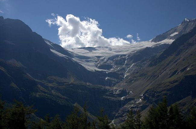 ハイキングの開始地点である、アルプグリュムから、パリュ氷河がきれいに見えます。
