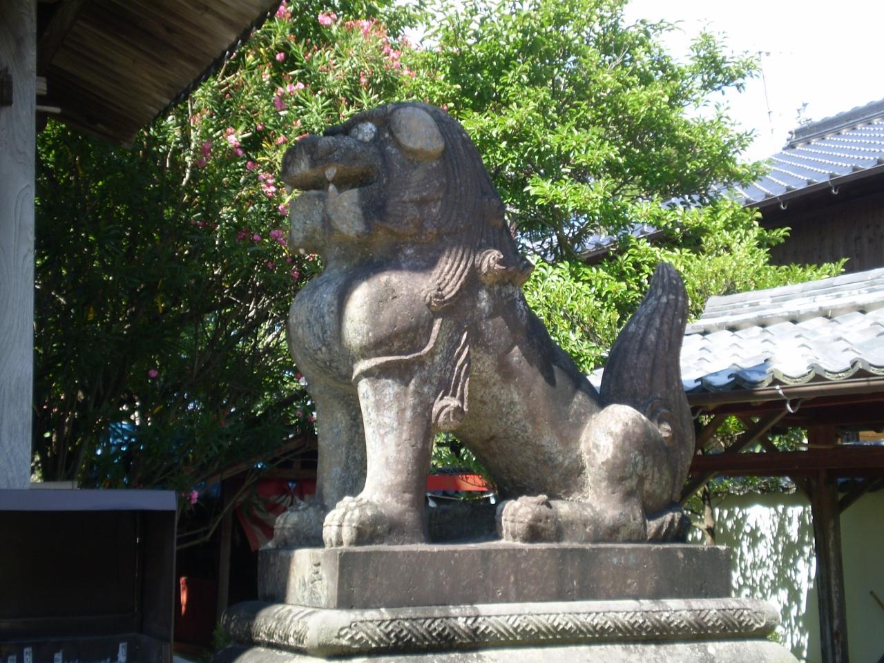 ここの狛犬は、はっきりした目と、やたら尖っ