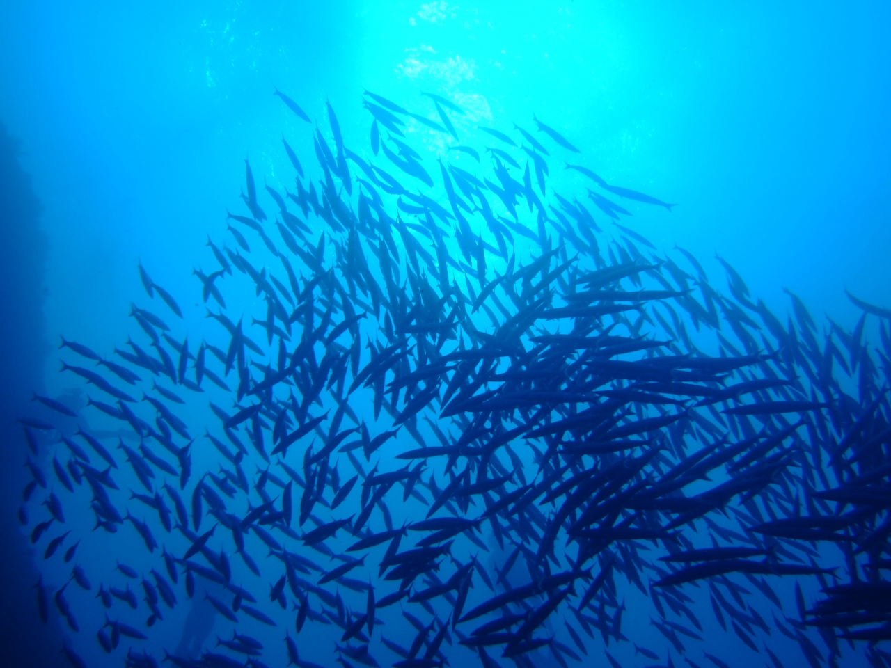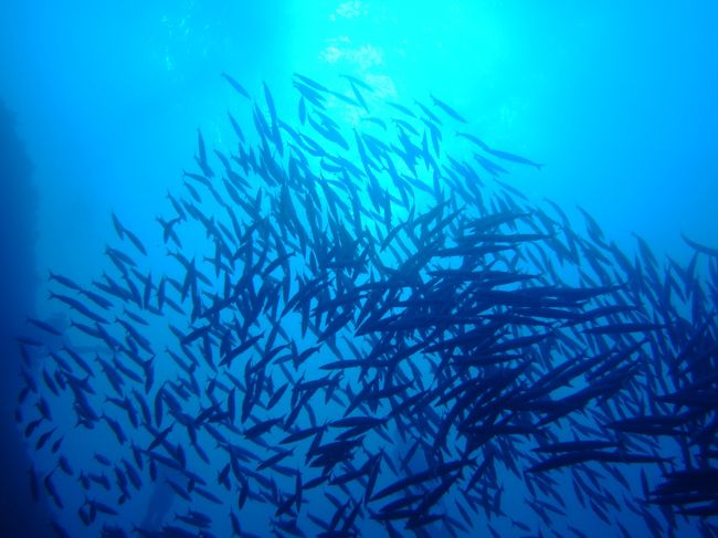 潜降してすぐ、ホソカマスの群に遭遇 -