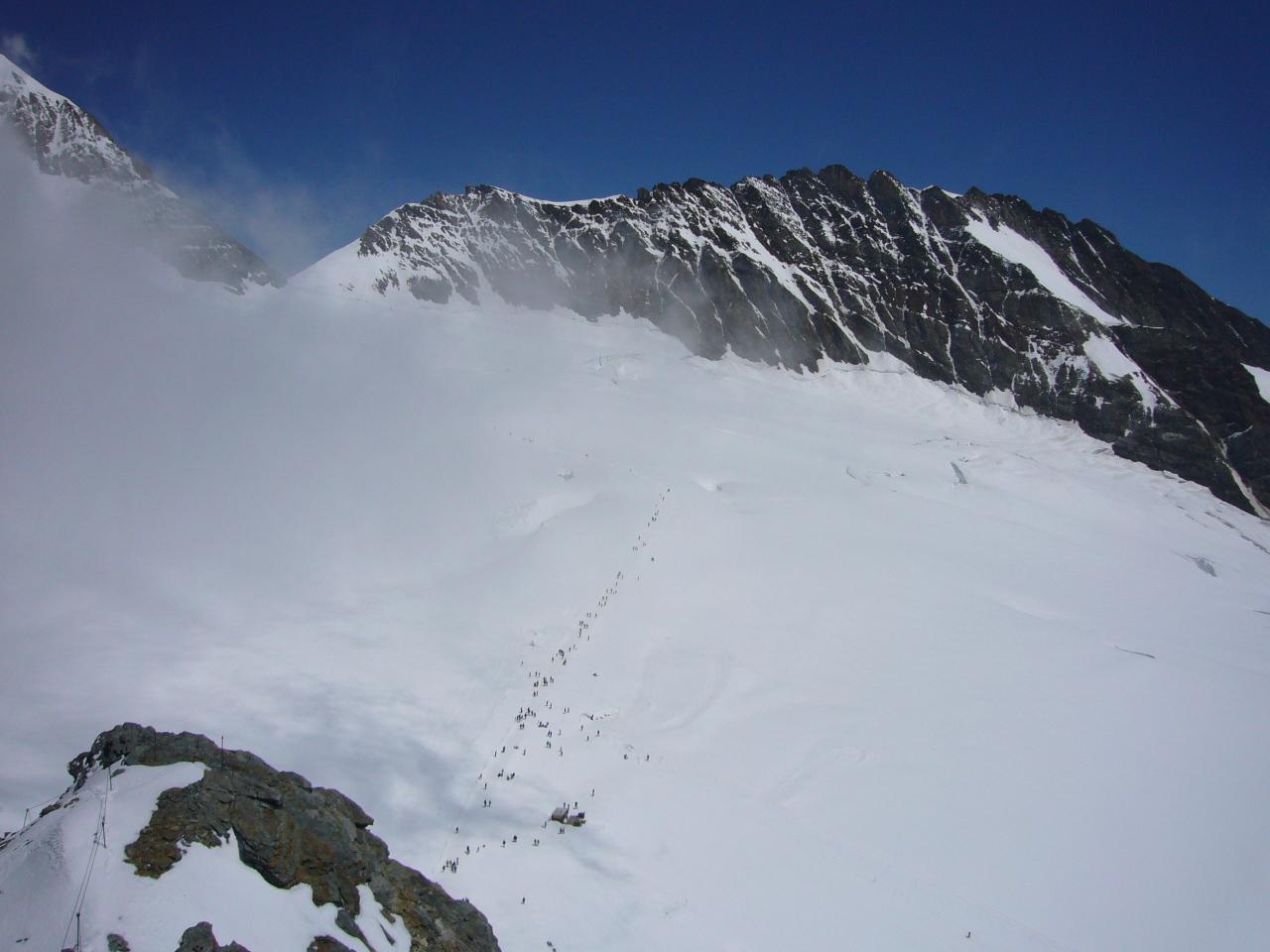 アレッチ氷河がガスに隠れる前にヨッホに着けたので