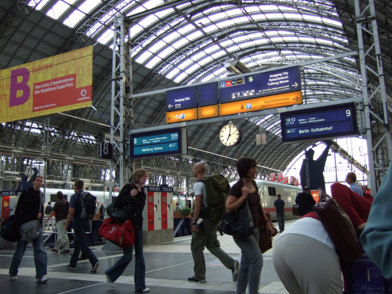 フランクフルト中央駅に到着しました。10分の乗換えでオッフェンバッハ行きの列車に乗るはずだったのですが、待っていたホームに入ってきたのはベルリン行きのICEでした。なので、50分余計に待つことになりました。