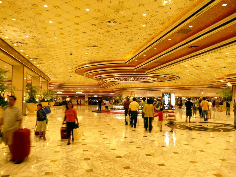 夜のMGMグランドのフロントロビー