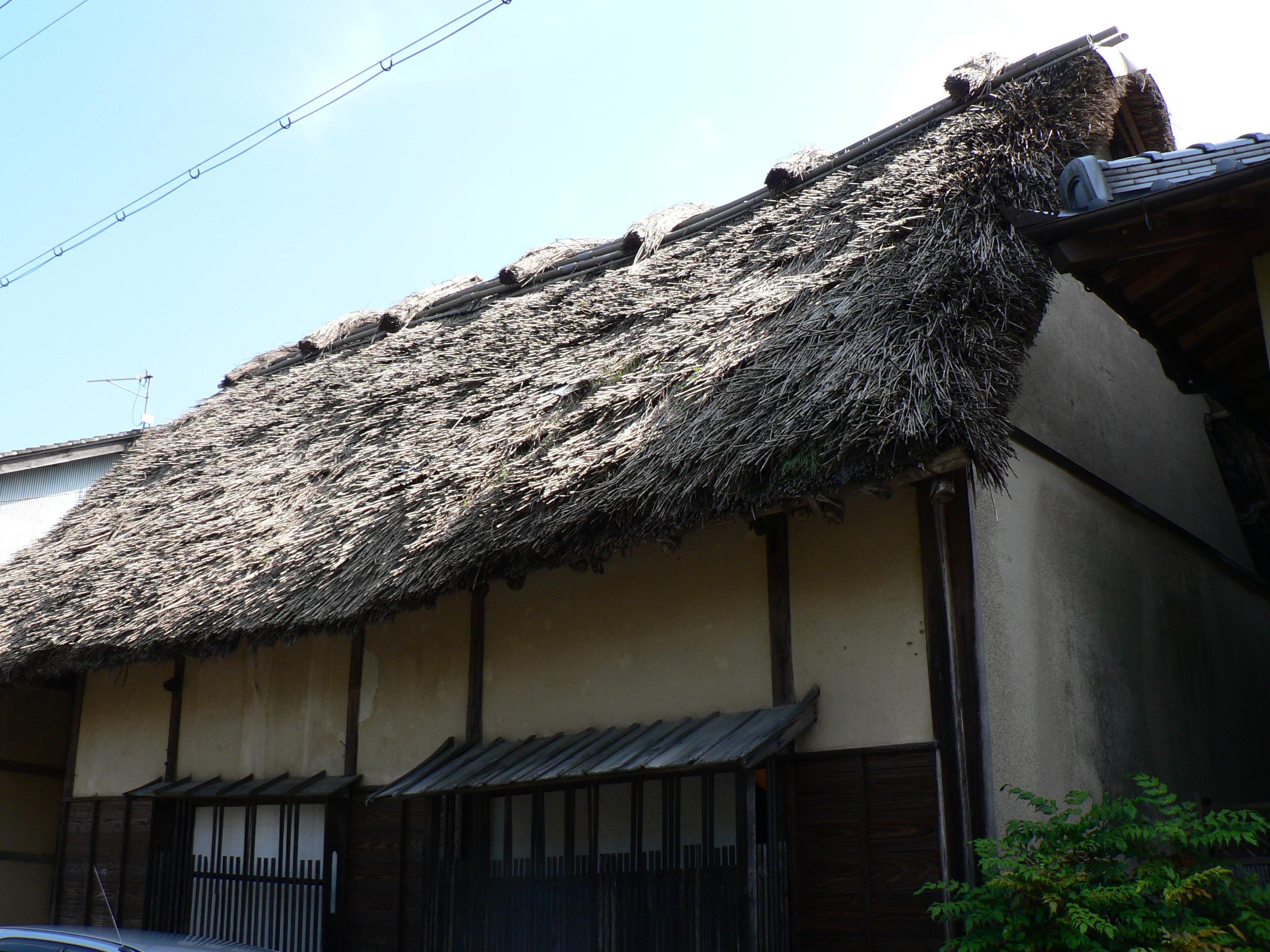 ミズアオイを見たあと、近くの武家長屋へ。長屋と言っても今は一軒残るのみだが、かっては町屋が茅葺だったことを示す貴重な建物だとか。ここで説明いただいた係りの方に最近テレビなどで報道された永楽館が一般公開されていることを教えていただき、さっそく向かう。