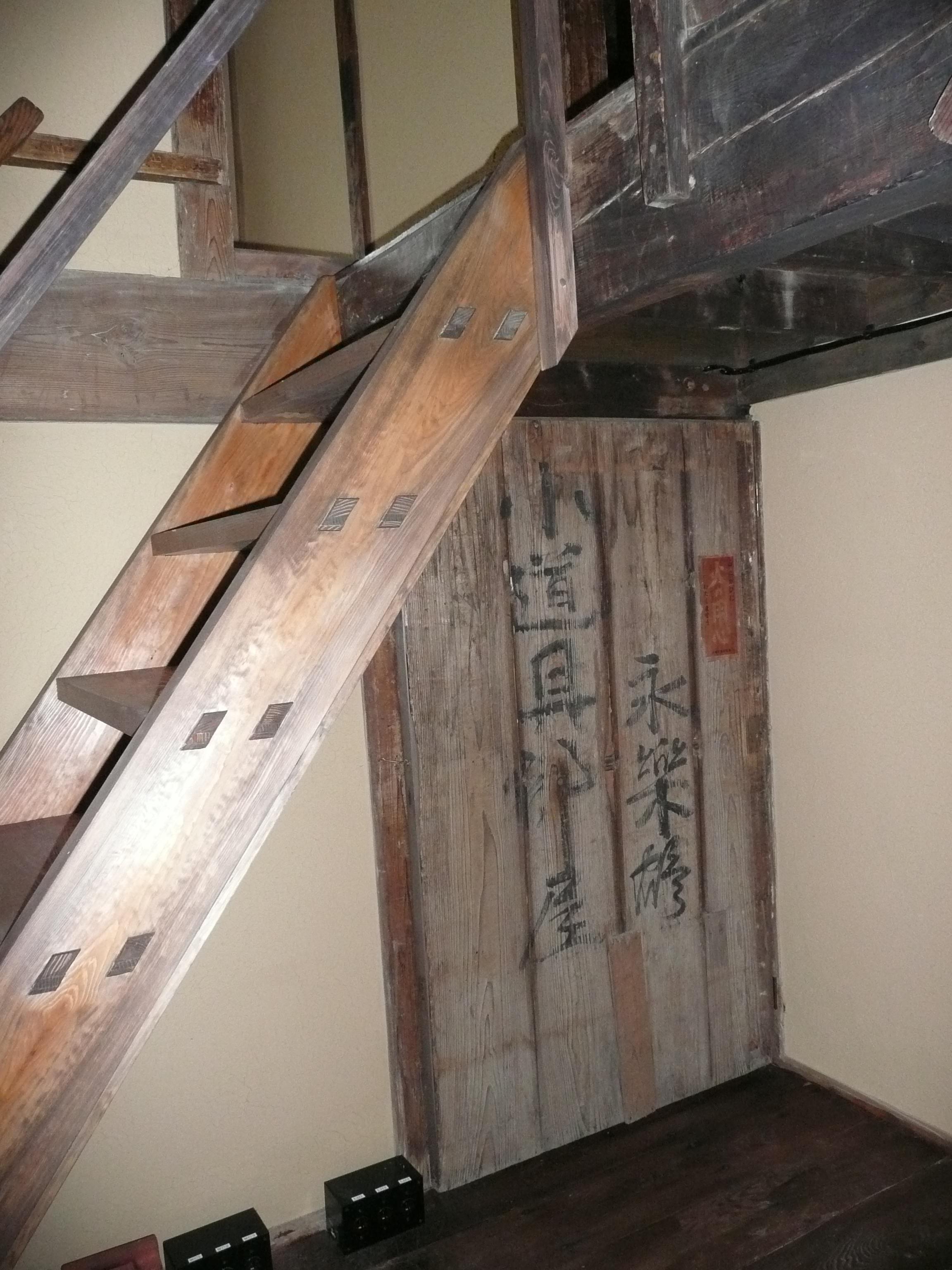 舞台の奥にある小道具部屋と楽屋がある2階へあがる階段