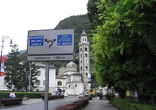 ここから150m先のロータリーには<br />16世紀に建てられた教会があって、<br />右へ行くとスイス.<br />左へ行けばミラノ.<br />歴史と異国とが身近にある街。<br />Tirano<br />