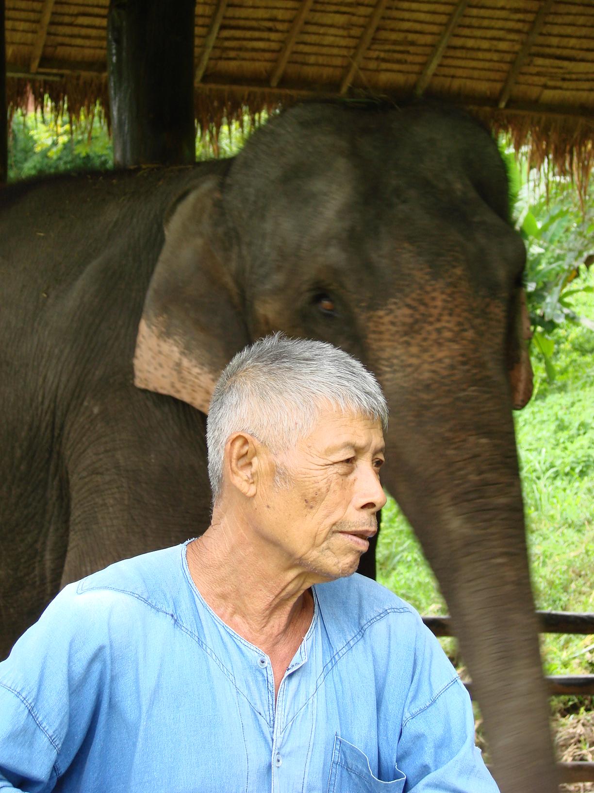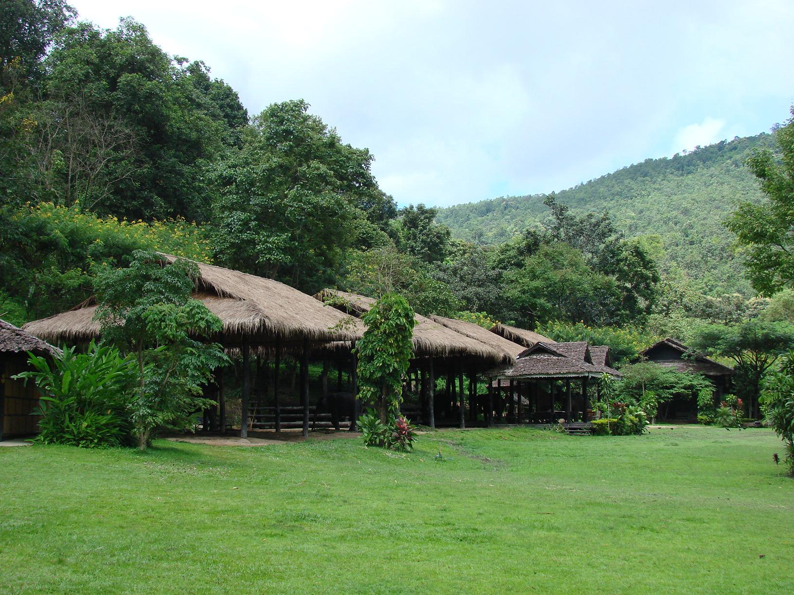 周りを豊かな自然の緑に囲まれた山中のキャンプの横にはメーサ谷の濁流が流れており約八十頭いる象たちの水浴場になっている。