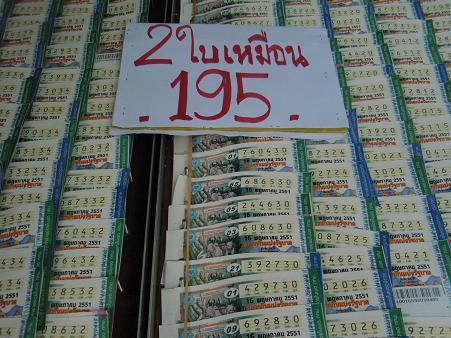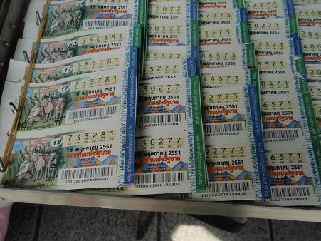 この辺り、宝くじ屋が数百軒と屋台を出している。ロトの番号札がずらーと並んでいる。タイ人がこれ程くじ好きとは知らなかった。皆明日の億万長者を夢みて、それぞれお好みの番号を選んでいるようだ。夢みる国民。この点に於いてはタイ人も日本人も変わらない。